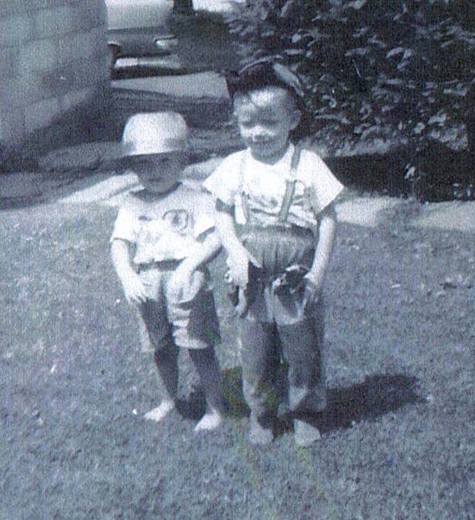 Until I went off to school by myself, my brother Todd was my best friend and constant companion. I was born in 1952, Todd in 1954. So when I went to full-time school at age 6, he was 4 and got left behind — so says my mom. I know we did play together for many years after that. He was always part of our sports games and always my trusted sidekick in the army or cowboys. (Me on the right)